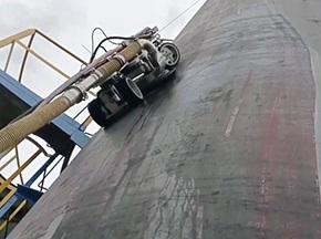 立式儲油罐是儲存油品的容器,基本上是采用吊籃或搭腳手架,由人工持手動工具除銹,或噴砂除銹。德高潔RC360W-MG280儲罐除銹機器人,采用爬壁機器人搭載除銹清洗器作業(yè),適用于大面積鋼制表面除銹工作,可同時解決行走、附壁、射流三個問題。[查看詳情]