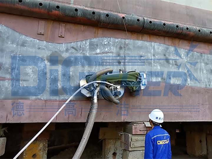 另外值得一提的是,德高潔超高壓水除銹爬壁機器人無需借助任何輔助支撐機械可以攜帶200kg負載,可以搭載超高壓水清洗機構(gòu)、噴涂或噴砂工具,實現(xiàn)除漆和再噴涂同步作業(yè)。