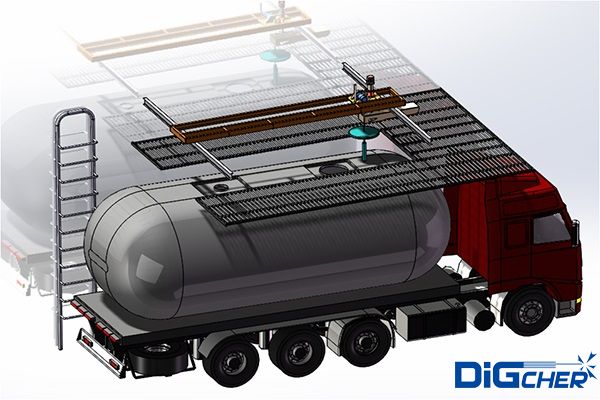 4、罐車停到清洗工位后,三坐標(biāo)軌道對位機構(gòu)可以在X和Y方向調(diào)整,以便清洗機構(gòu)可以對正罐口;蛘咴跅蜃笥覂蓚(cè)停車工位之間轉(zhuǎn)換,提高清洗機構(gòu)使用效率;